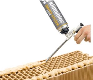 Klimabloc DRYFIX extra lepak za brušeni blok je vlagootporni, jednokomponentni PUR-lepak koji se sme koristiti isključivo za lepljenje brušenog bloka marke klimablock u okviru DRYFIX extra sistema i koristi se za izgradnju vertikalnog zida (nosivog i nenosivog).